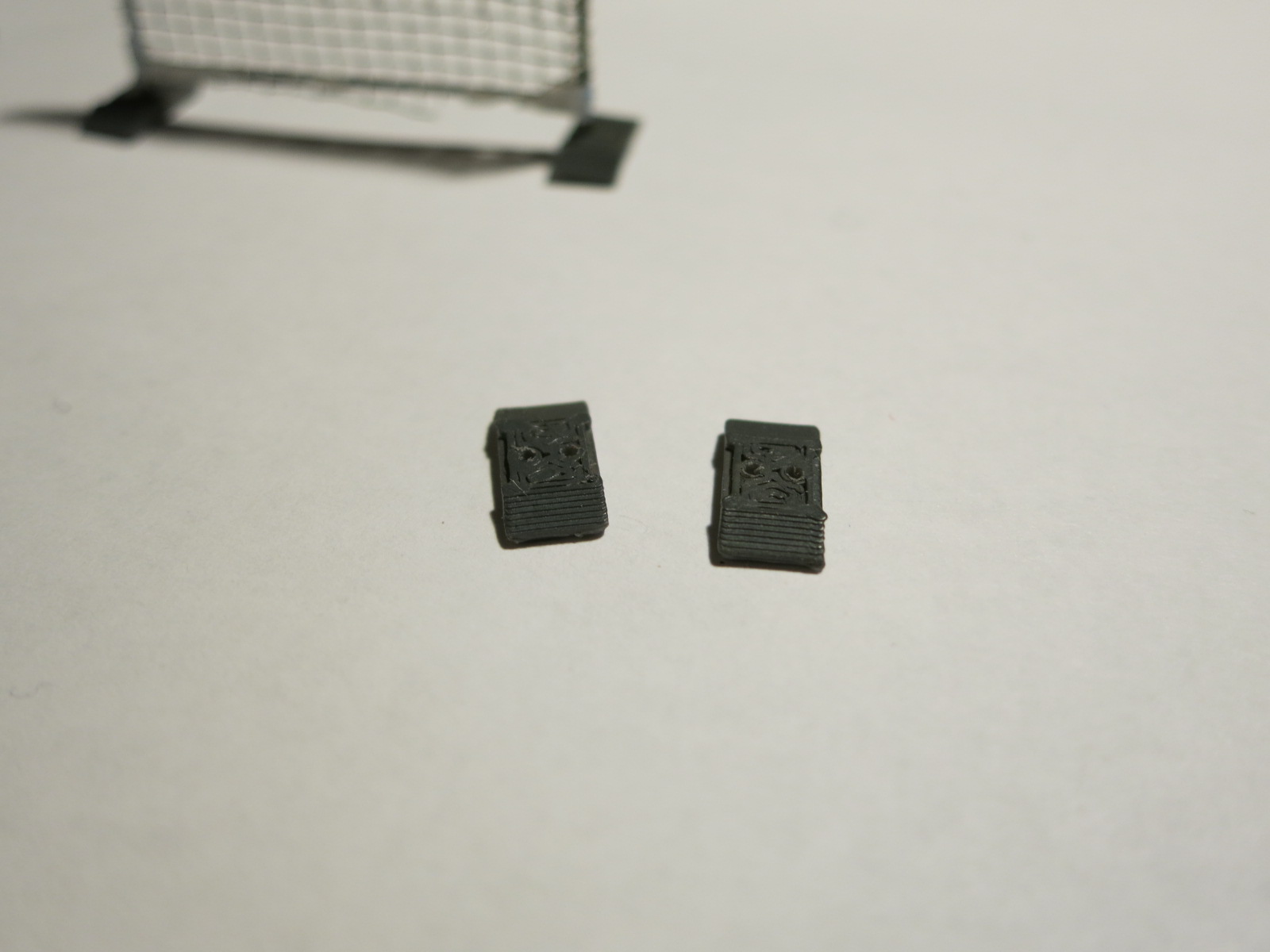 Les socles après peinture. Ils comportent déjà deux trous de 0,6mm |